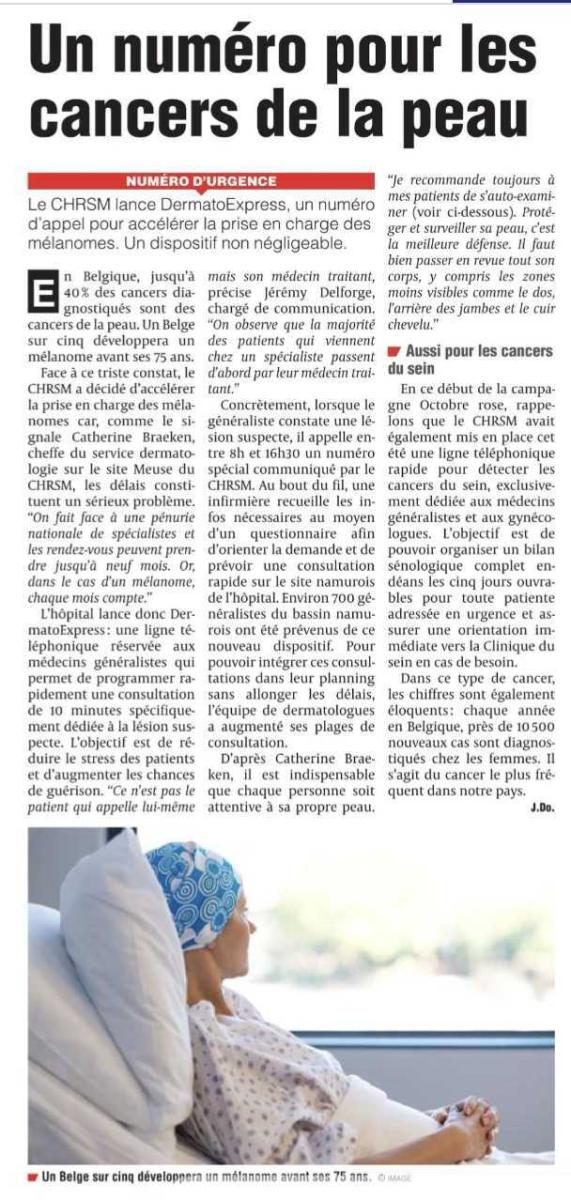 - 01/10/2025 - L'Avenir : Namur : un numéro d'appel pour diagnostiquer plus vite les cancers de la peau - L'Avenir